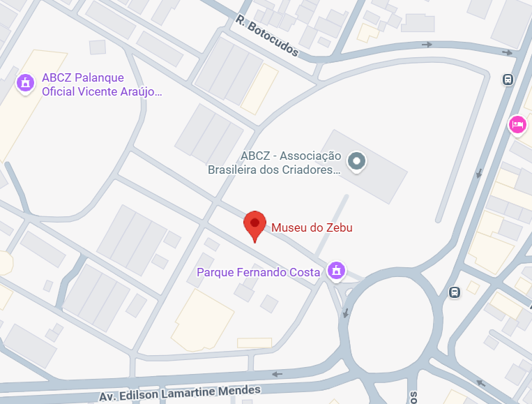 O Museu do Zebu está localizado na Praça Vicentino Rodrigues da Cunha, 110 – Bloco 22, Parque Fernando Costa, Uberaba – MG, CEP: 38022 – 330, Brasil.
