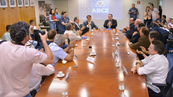 Na sala de reuniões da diretoria, com participação de convidados da comitiva do deputado, conselheiros da ABCZ e pecuaristas, Jair Bolsonaro acompanhou uma apresentação sobre a força da Associação no cenário nacional e a importância da pecuária. O superintendente comercial da ABCZ, João Gilberto Bento, foi quem mostrou números importantes dos projetos desenvolvidos pela ABCZ, como o Pró-Genética, e o impacto do setor na economia, com valores de exportação de carne e volume de leite produzido. Também foi exibido vídeo sobre a ExpoZebu e, formalmente, entregue o convite para que o deputado participe da feira em 2018.