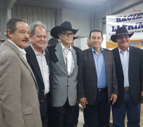 Na foto, José Luis Morales; Pres. Associacion De Criadores De Ganado Registrado; Arnaldo Manuel, pres. ABCZ; Carlos Enrique Zúñiga Fumagalli, pres. Del Comité Permanente Expoleche; Jimmy Morales; pres. De La República De La Guatemala; José Santiago Molina, Pres. Comité Expica Permanente