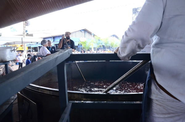 Para garantir o sucesso da empreitada, o preparo começou ainda de madrugada. “Nós iniciamos os preparativos à meia-noite. Às 2h já acendi o fogo e a partir daí não paramos mais. O trabalho foi enorme, imagine você fazer um guisado na sua casa para quatro pessoas e aqui nós fizemos para 10 mil”, explica o chefe Allan Vila, responsável pela receita que teve como base acém e coxão duro.
