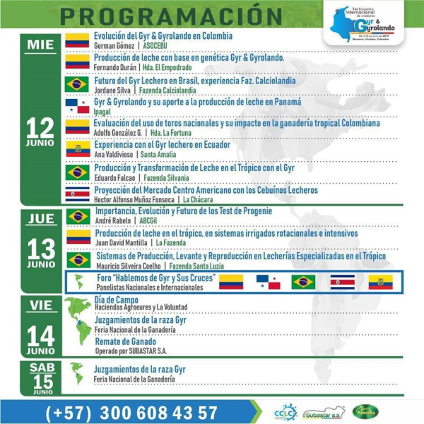 Maiores informações sobre o ‘1º Encontro Internacional dos Criadores de Gir e Girolando’ podem ser obtidas através do telefone (+57) 300 608 43 57 ou pelo e-mail cclcdireccionejecutiva@gmail.com.