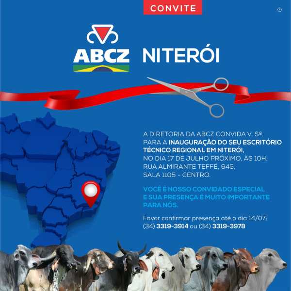 A Associação Brasileira dos Criadores de Zebu (ABCZ) inaugura no próximo dia 17 mais um escritório técnico regional. Trata-se de uma unidade em Nitéroi (RJ). A inauguração é aberta a associados, profissionais e lideranças do setor.