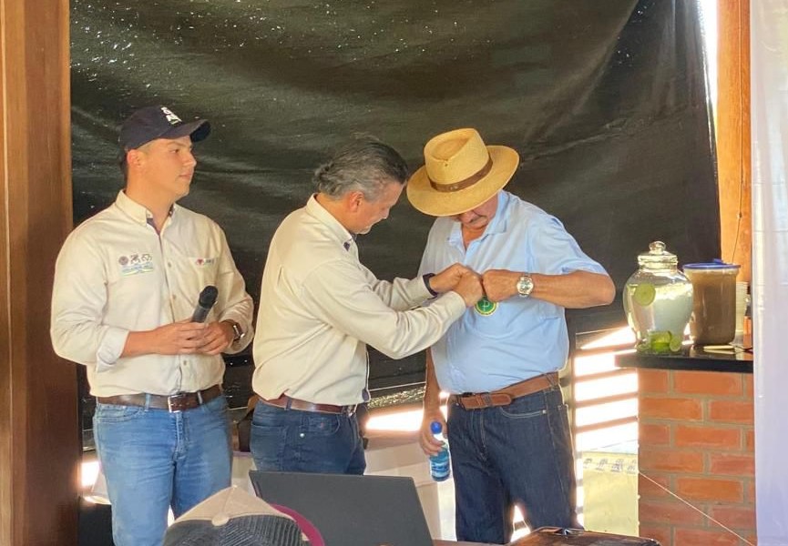 A Fazenda Santo Domingo, do criador Percy Suarez, localizada em Trinidad-Beni, no norte boliviano, entra para a história como a primeira a aderir ao PMGZ Internacional. A adesão foi oficializada nessa terça-feira (4), durante o Dia de Campo PMGZ, realizado na propriedade pioneira, em parceria com a Asocebu (Asociación Boliviana de Criadores de Cebú). Em ato simbólico pela adesão, o Gerente de Fomento do PMGZ, Ricardo Abreu, colocou o bóton de caranguejo da ABCZ no pecuarista Percy Suarez.