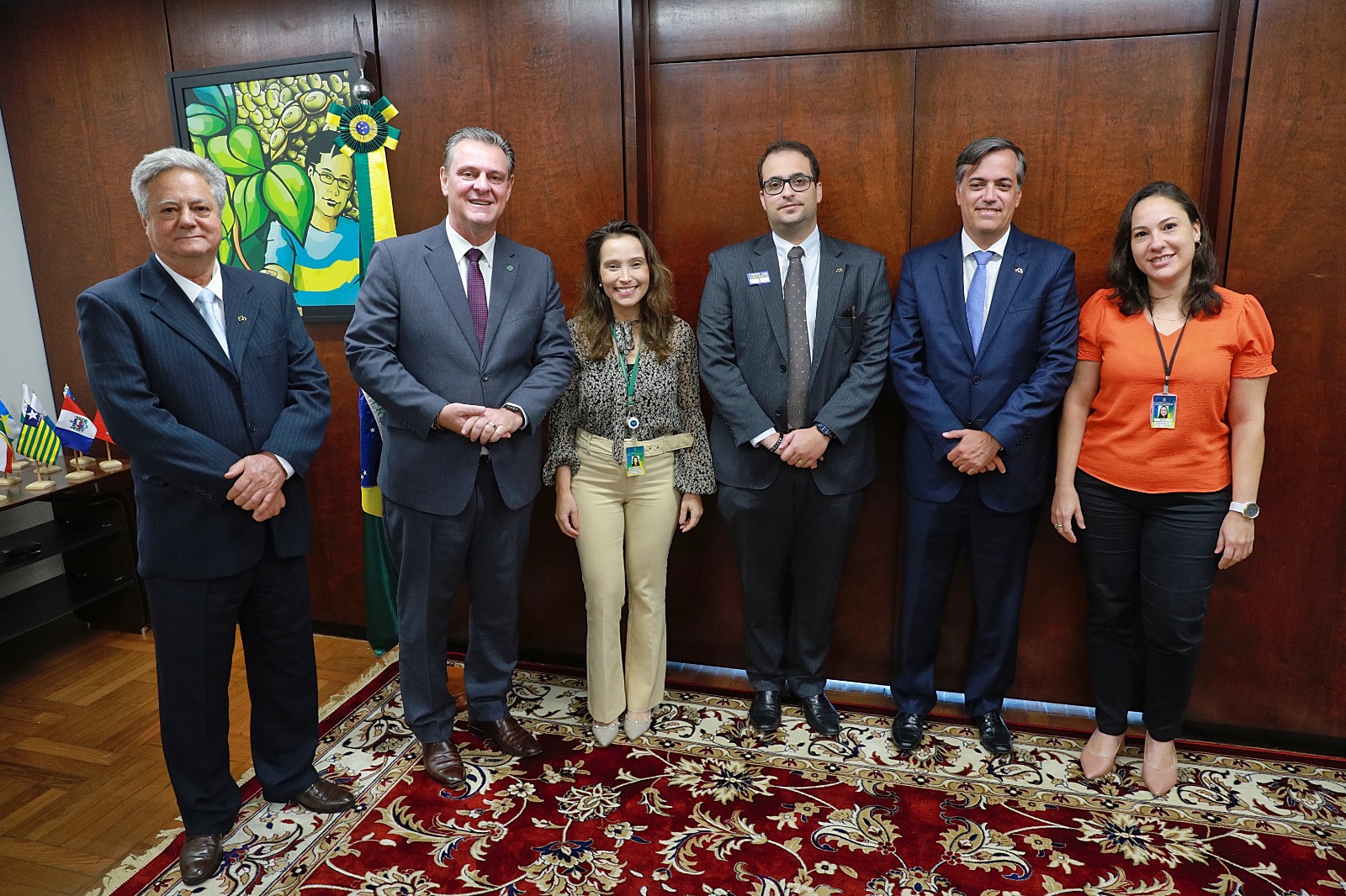 A comitiva liderada pelo presidente da ABCZ, Gabriel Garcia Cid, e formada pelo membro da Comissão de Assuntos Políticos, Jorge Pires, e o diretor de Relações Governamentais, Romildo Antônio da Costa, se encontrou com o Ministro da Agricultura e Pecuária, Carlos Fávaro, a chefe da Divisão de Material Genético Animal da Secretaria de Defesa Agropecuária, Martha Bravo, além da coordenadora geral de Insumos Pecuários da Secretaria de Defesa Agropecuária do Ministério da Agricultura e Pecuária (Mapa), Bárbara Cordeiro.