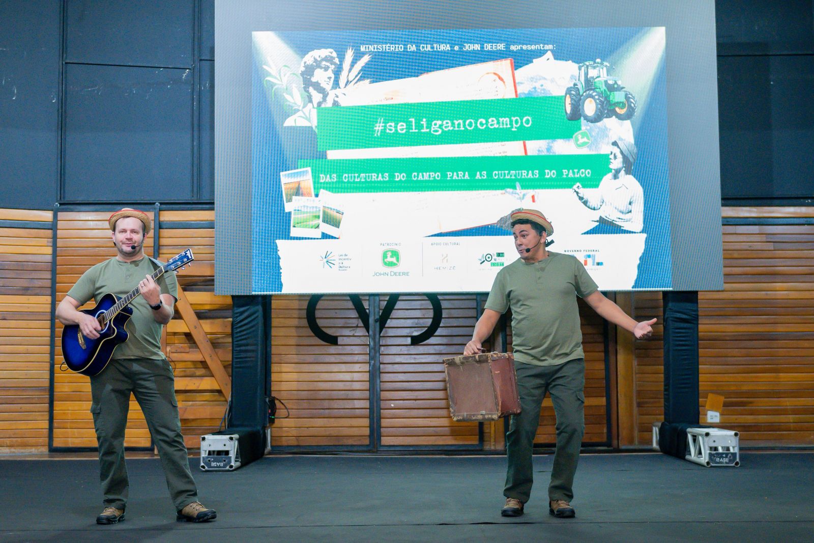 O Centro de Eventos Rômulo Kardec de Camargos recebeu, na manhã desta segunda-feira (18), a peça teatral “Se Liga no Campo: das Culturas do Campo às Culturas do Palco”. A iniciativa foi desenvolvida pela associação De Olho no Material Escolar, em parceria com o Instituto John Deere e o Ministério da Cultura, com apoio da Associação Brasileira dos Criadores de Zebu (ABCZ) e do Museu do Zebu.