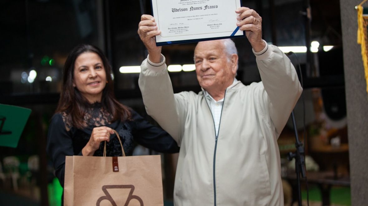 Homenagem prestada ao sr. Udelson, em julho de 2025, durante o lançamento do livro "De Minas Para o Mundo", com presença da diretora da ABCZ, Ana Cláudia Mendes Souza