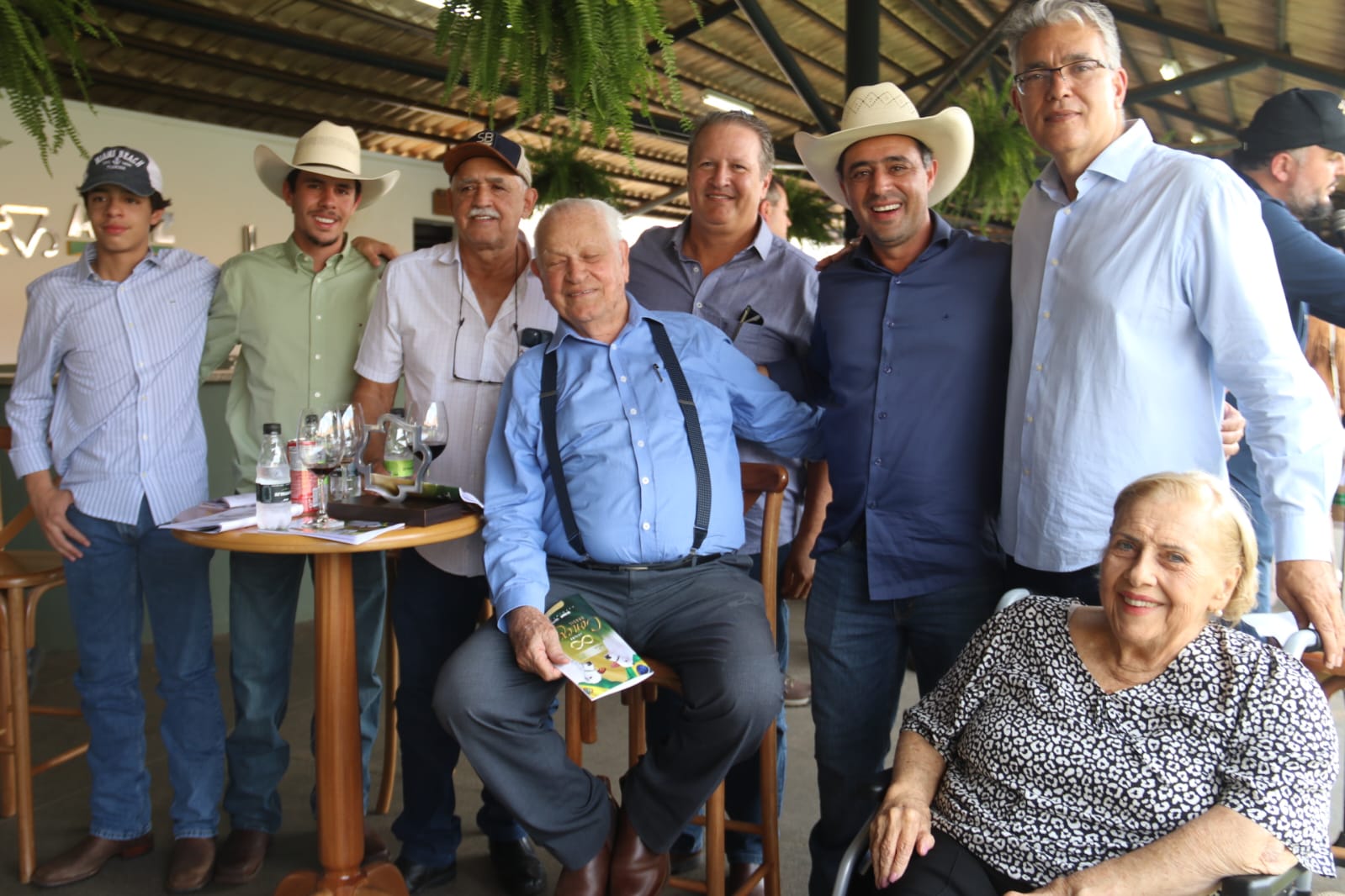 O sr. Udelson com o presidente da ACNB, Victor Miranda, e amigos criadores, durante o leilão Conexão Brasil-Bolívia, no Parque Fernando Costa, em Uberaba (MG)