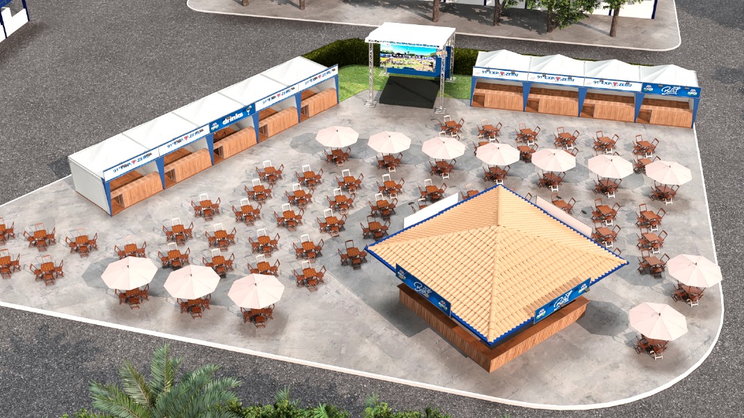 A estrutura contará com 43 pontos de bebidas e alimentação, distribuídos estrategicamente entre a avenida principal, a região da mangueira e o espaço do rodeio.