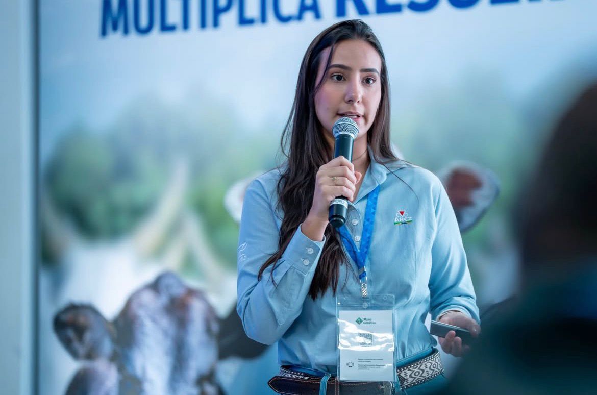 Representando a ABCZ, a analista de Melhoramento Genético, Nathália Costa Diniz, participou do bloco “Abate”, ministrando a palestra “Genética no gancho: o que os resultados do PMGZ Carne nos indicam?”, apresentando dados atualizados do programa e integrando a mesa-redonda do painel.