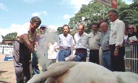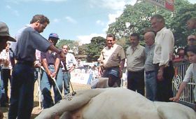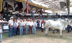 Comissão de marcação posa junto a zebuíno, durante a expozebu/97.