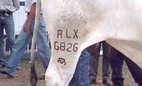Zebuíno recebe marca da ABCZ e código de identificação do criador do Superintendente-Adjunto de Genealogia, Sr. Carlos Humberto Lucas.
